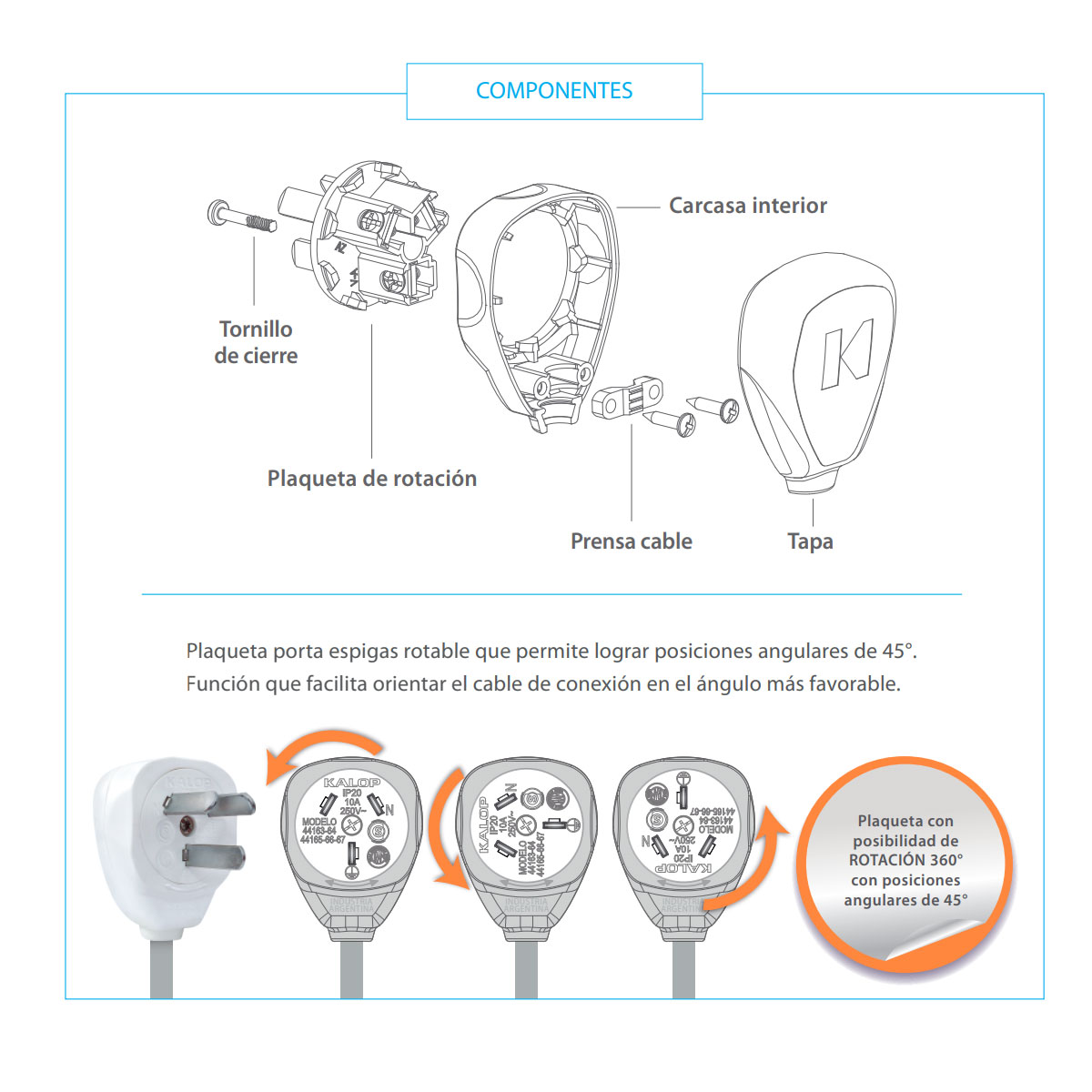 Ángulo de salida de conductores: 90° con respecto a las espigas. Contribuye a reducir el volumen ocupado por la