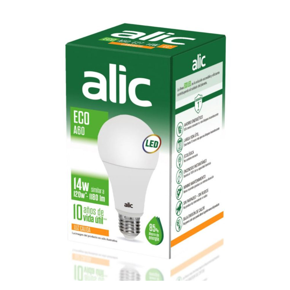 LAMP.ALIC ‘ECO LED’ BULBO A70 14w CALIDA